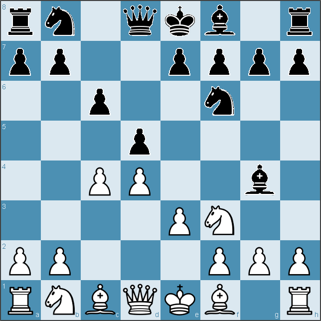 10. Nimzovich Defence e3+Nf3 - d5+c5+b6 Move 11